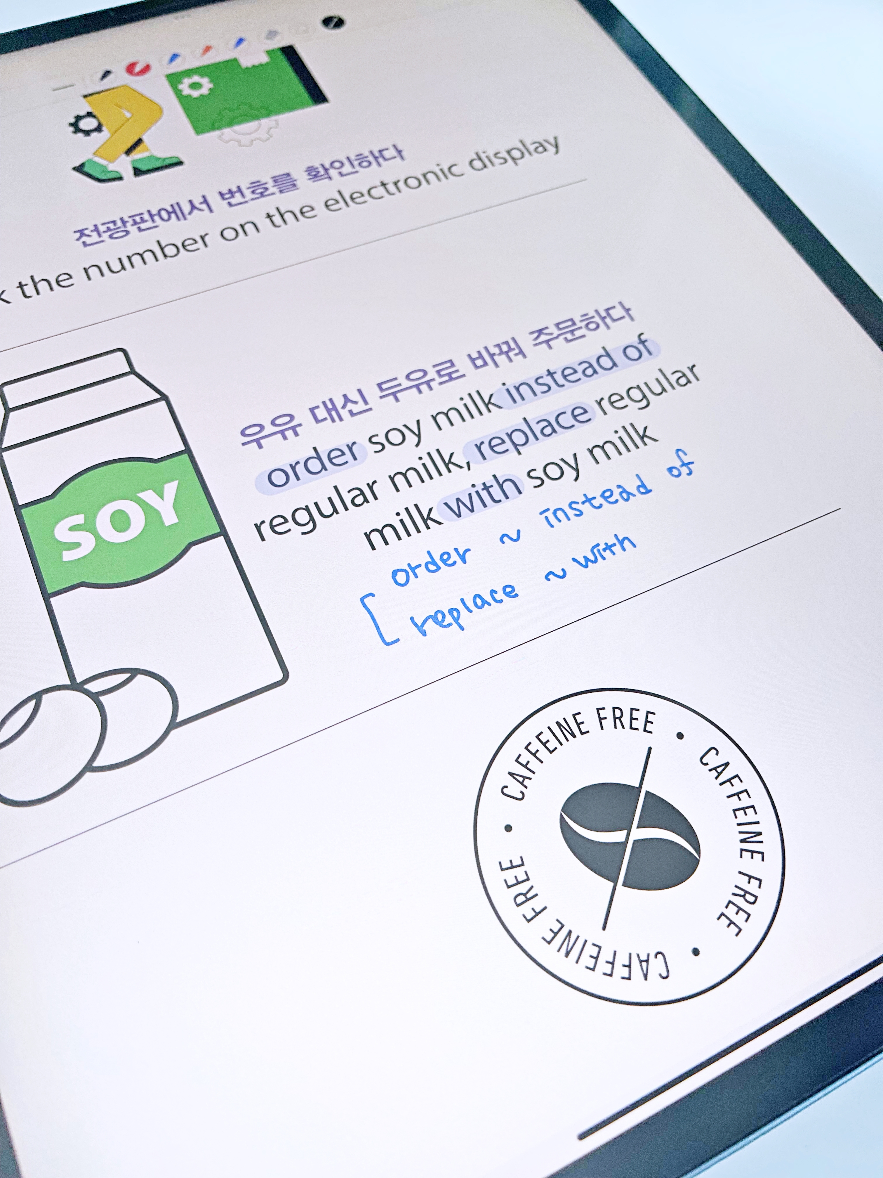 간단한 영작은 노팅앱에다 바로 필기할 때도 있고, 화면분할로 굿노트를 띄워 놓고 할 때도 있다.